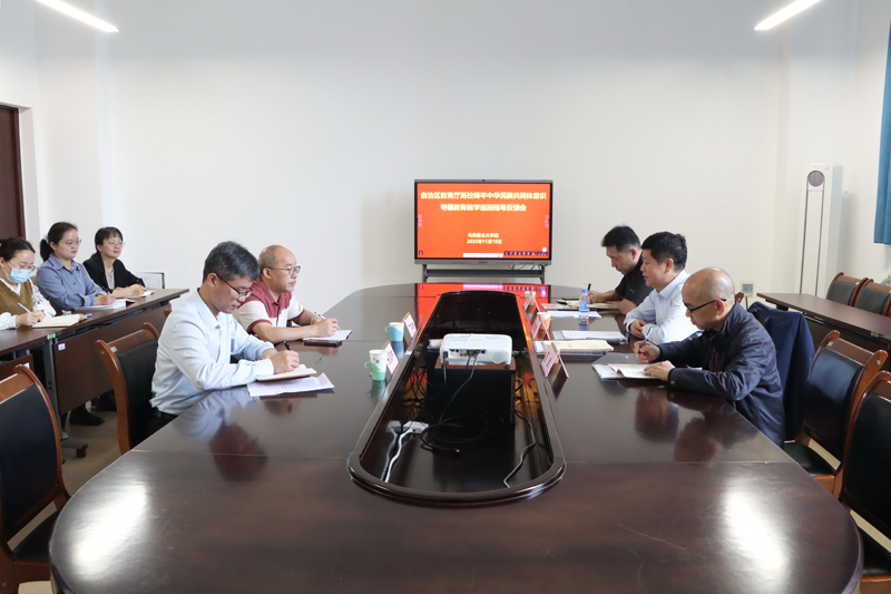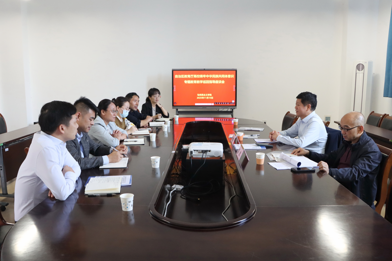 为了更好地推进“中华民族共同体概论”课程建设及相关教育工作,全面推进铸牢中华民族共同体意识教育进教材、进课堂、进头脑,推动铸牢中华民族共同体意识融入思政课一体化建设,2025年11月10日,全区高校铸牢中华民族共同体意识专题教育教学巡回指导专家组组长曾令辉一行到我校开展专项指导检查工作。马克思主义学院院长丁祥艳、副院长朱凤林出席汇报会,“铸牢中华民族共同体意识专题”教研室教师参加汇报会。